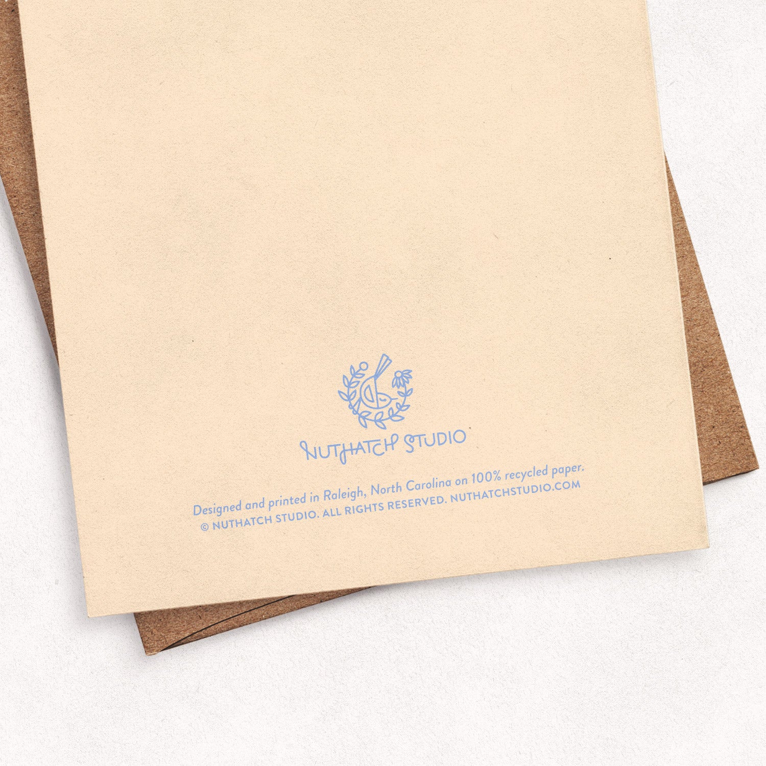 Each eco-friendly card is printed on high-quality, 100% recycled paper in Raleigh, NC, and includes a matching recycled kraft envelope.