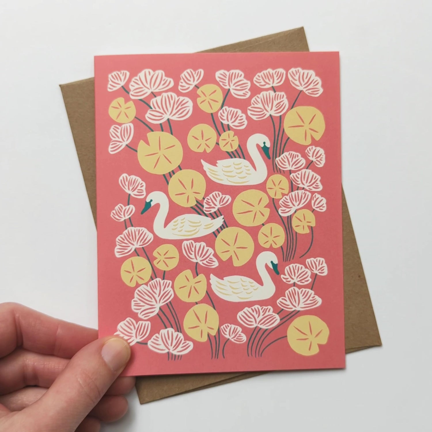 Send Christmas cheer with this holiday card featuring original art of swans a-swimming. Part of our festive Holiday Birds collection, this blank card is the perfect place to share your holiday greetings with family and friends.