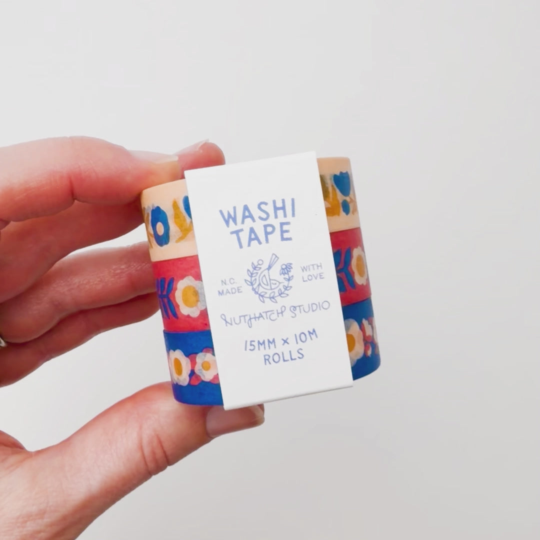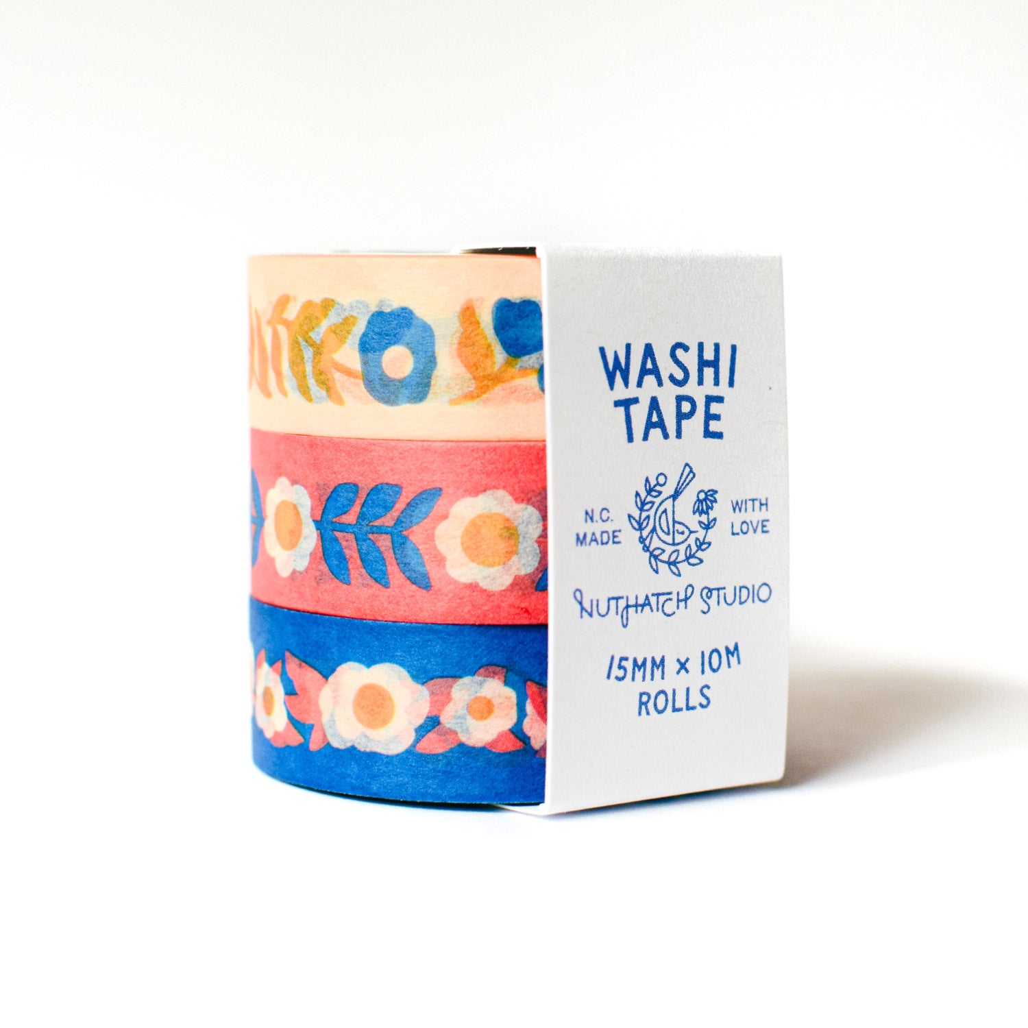 Brighten up your journal, personalize an envelope, or organize a notebook with our Floral Washi Tape Set. This set of 3 colorful tapes made from natural rice paper with soy inks is perfect for scrapbooking, bullet journaling, gift wrapping, and adding a personal touch to everyday items.