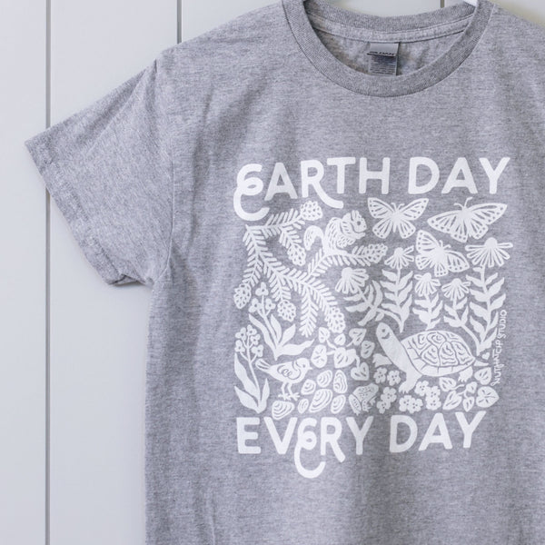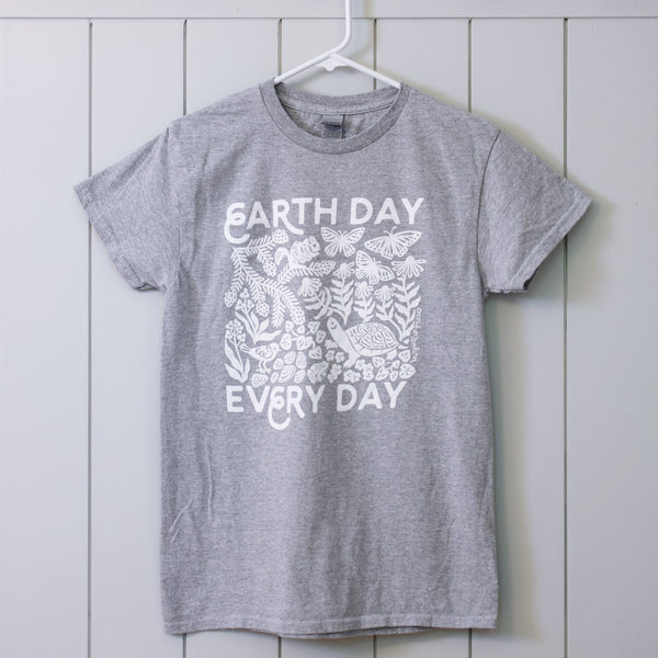 Upcycled Gray Earth Day Every Day T-Shirt - Unisex Size Small
