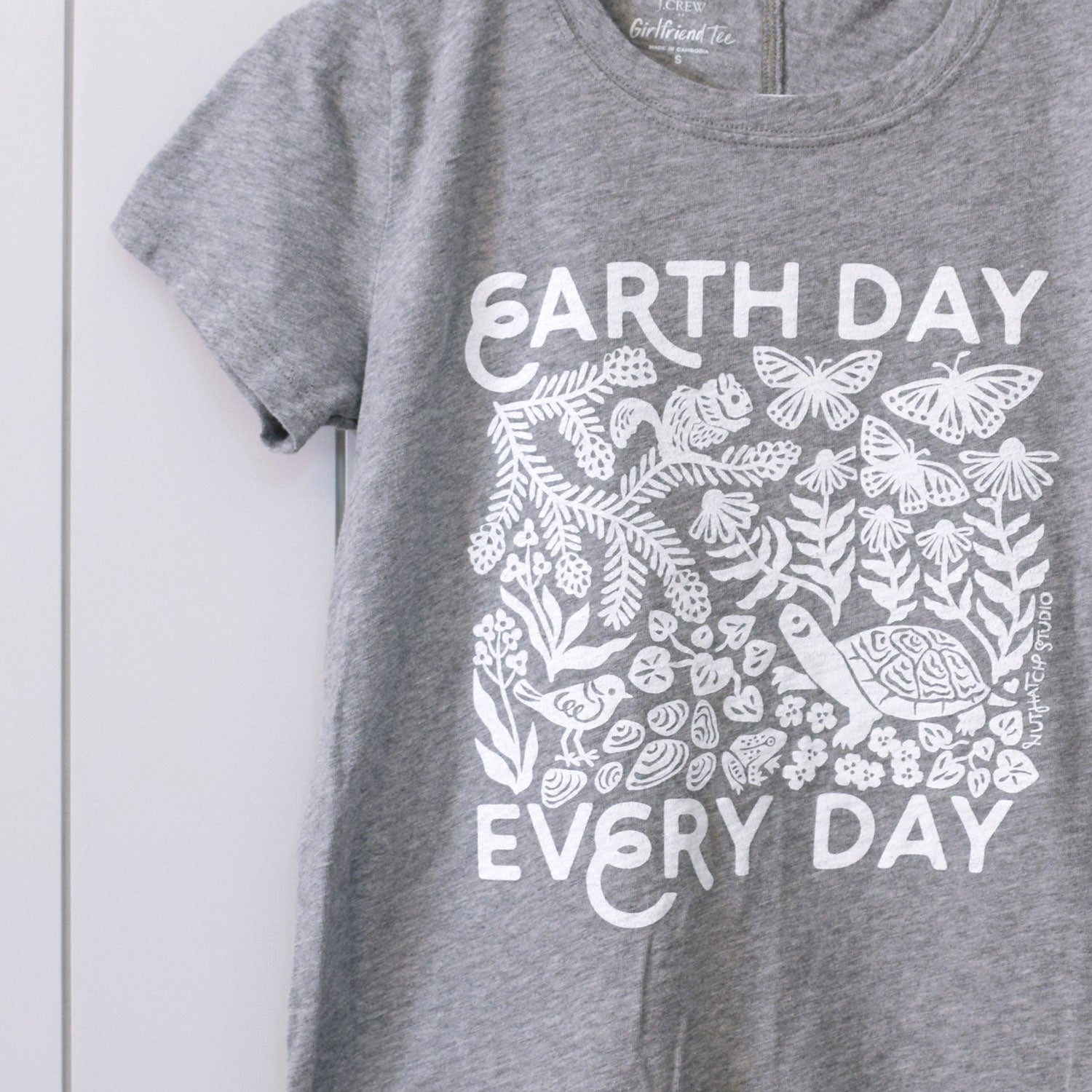 Upcycled Heather Gray Earth Day Every Day T-Shirt - Women’s Size Small