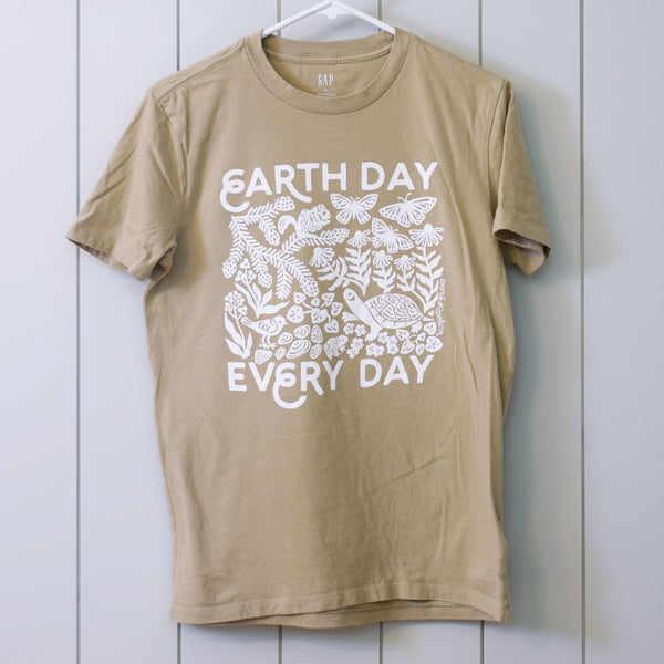 Upcycled Tan Earth Day Every Day T-Shirt - Unisex Size X-Small