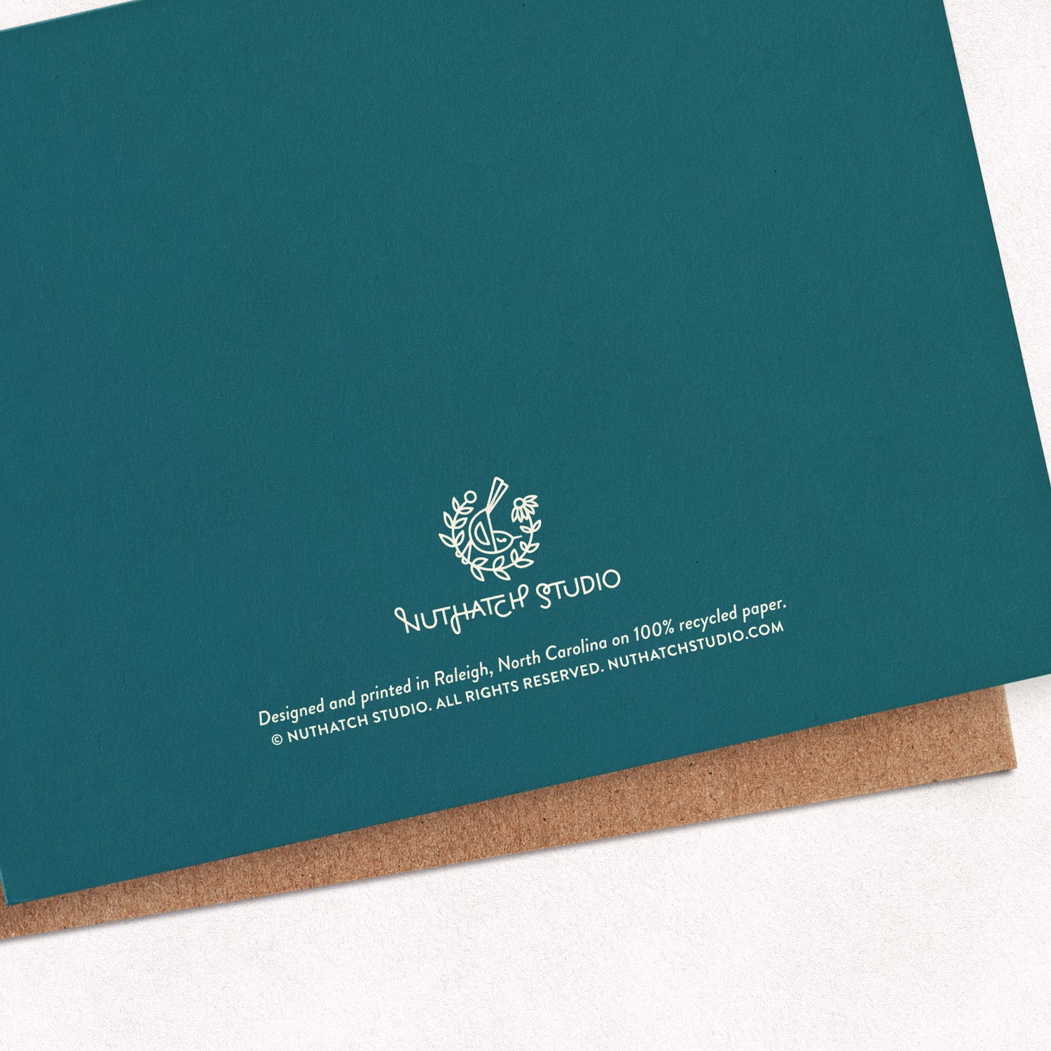 Each eco-friendly card is printed on high-quality, 100% recycled paper in Raleigh, NC, and includes a matching recycled kraft envelope.