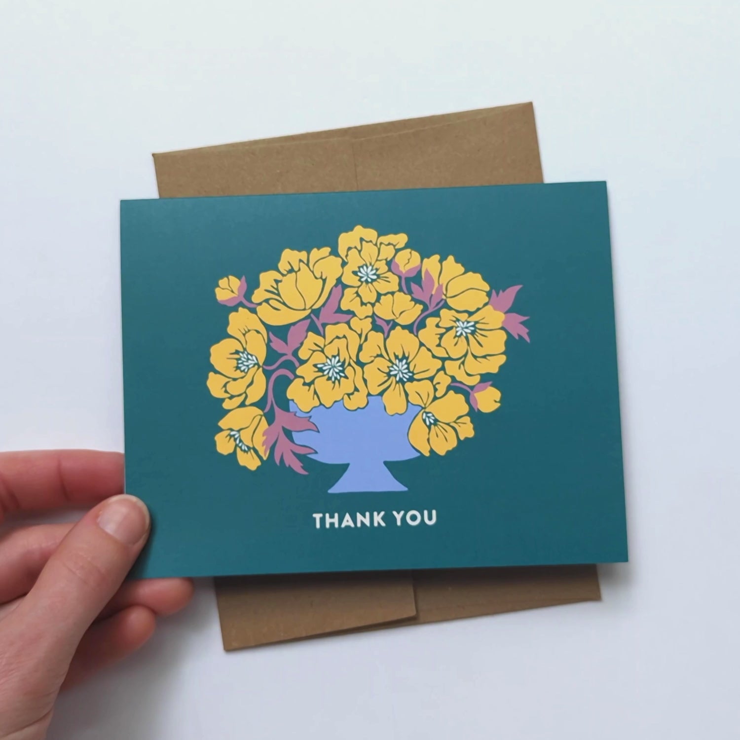 Brighten someone’s day with this floral thank you card featuring original art of cheerful yellow peonies in a pedestal bowl vase. Part of our colorful Flower Vase collection, this blank card is the perfect place to share your gratitude!